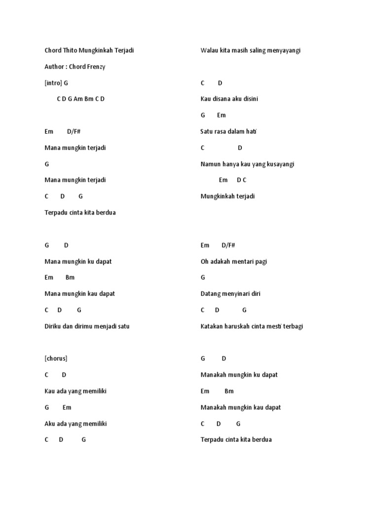 Thito Mungkinkah Terjadi Chord Lirikdankunci Com Lirik
