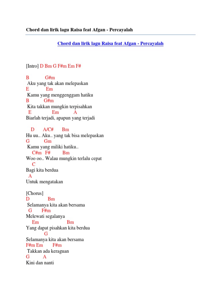 Lirik Lagu Afgan Feat Raisa Percayalah