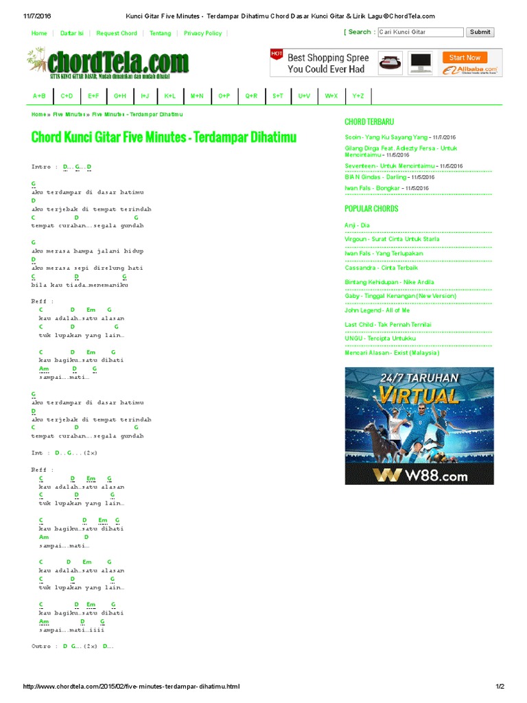 Kunci Gitar Five Minutes Terdampar Dihatimu Chord Dasar