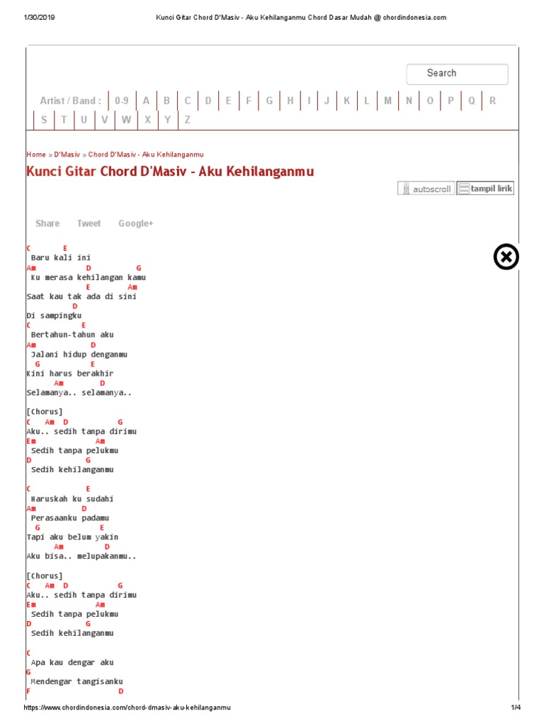 Kunci Gitar Chord D Masiv Aku Kehilanganmu Chord Dasar