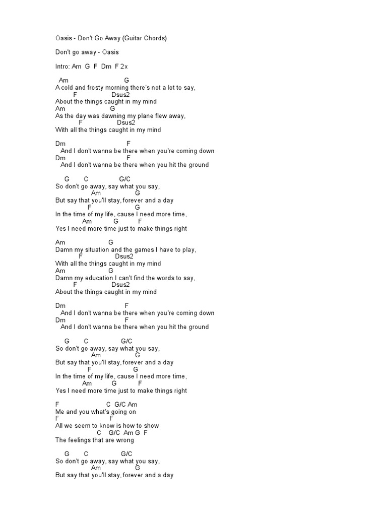 Chord lagu oasis dont go away. Fgonna start fm c a revolution from my bed f cause you said the brains. Song dont go away. Chord gitar lagu kunci gitar lagu oasis dont go away acoustic 62 submitter.