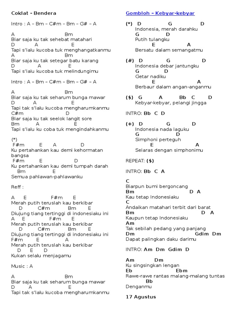 Lirik Lagu Wajib Nasional Dan Chord Indonesia Pusaka Ciptaan