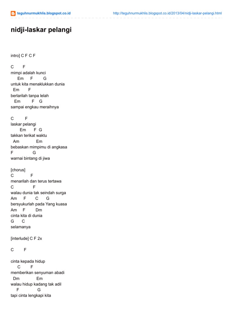 Lirik Dan Chord Gitar Laskar Pelangi By Nidji